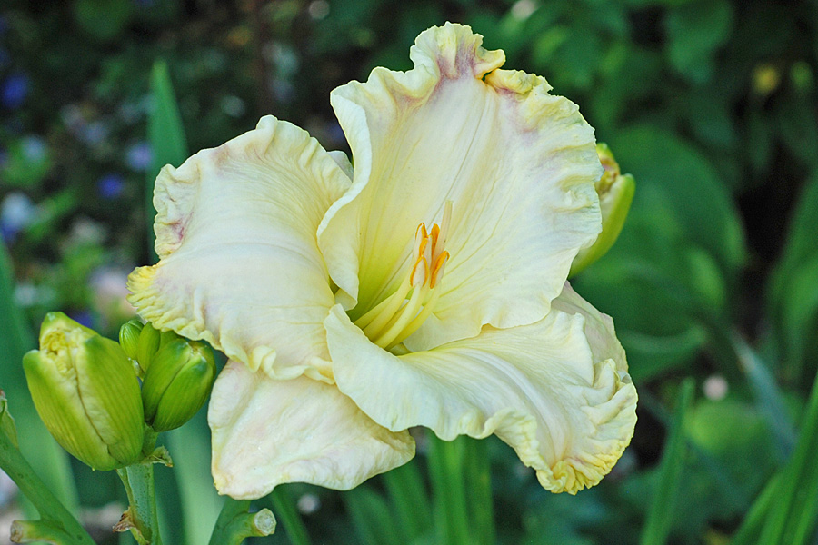 Eine anspruchsvolle Schönheit unter den sehr hellen Sorten ist 'Siloam Graduation' (Henry 1997). Sie entfaltet ihre großen gerüschten Blüten nur nach warmen Nächten zu voller Schönheit, dazu braucht sie auch genug Wasser. Also eigentlich keine Sorte für das Allgäu oder Mittelgebirgslagen, aber wirklich schön in Weinregionen und anderen wärmeren Gebieten.